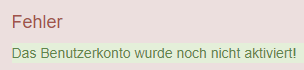 - Solange Euer Benutzer noch nicht aktiviert ist, erhaltet Ihr bei eimen Anmeldeversuch eine Fehlermeldung