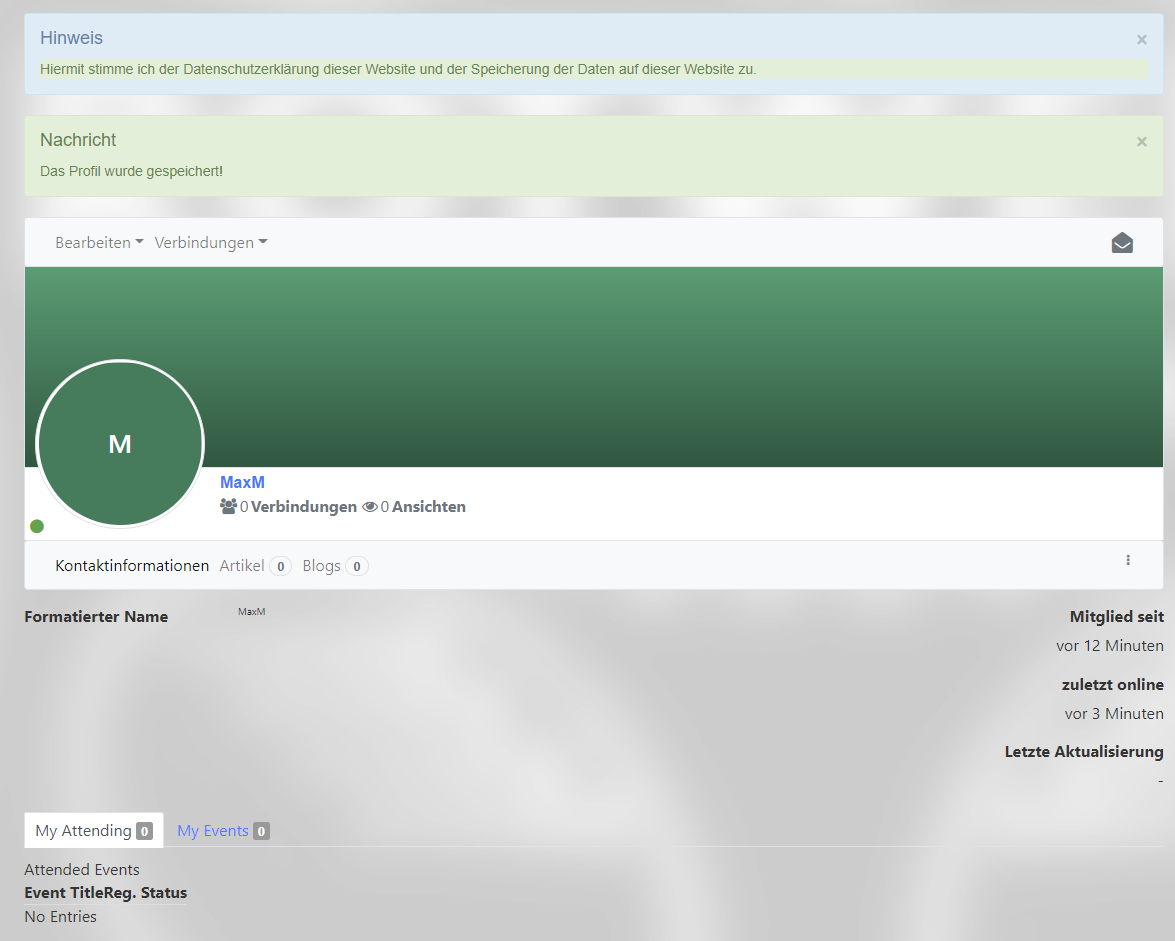 - Danach werdet Ihr auf Euer Profil weitergeleitet, wo Ihr auch gern noch persönliche Einstellung machen könnt (z.B. Profilbild, Hintergrund, ...)