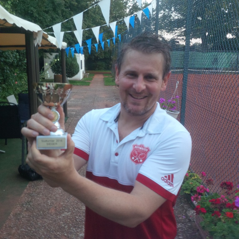 Eine besondere Freude kam bei Mario im Trikot des TC Rot-Weiß Grossbeeren auf. War es für ihn, der sehr erfolgreich in der Jugend Tennis spielte, der erste Turniersieg seit 20 Jahren.