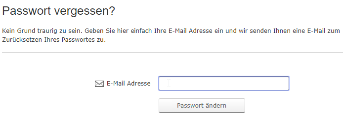 Nach Eingabe der korrekten E-Mail Adresse und "Passwort ändern" aktivieren, bekommt Ihr eine E-Mail mit einem Link. Über Diesen könnt Ihr Euch dann eine neues Passwort setzen.