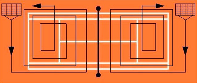 Platz muss freigegeben und spielfähig sein (kann nach starken Regengüssen zu Einschränkungen führen). Bei Trockenheit müssen die Plätze ggf. vor Spielbeginn gewässert werden (wie auch nach dem Spiel). Ziehen Sie bitte den Platz nach dem Spiel laut nachfolgender Skizze ab.