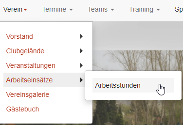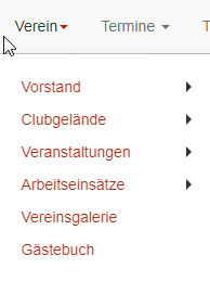 Nach erfolgreichem Login sind dann unterhalb des Menüs "Verein" weiter Submenüs sichtbar.